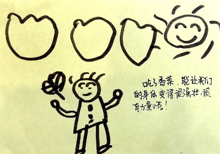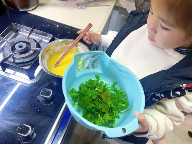 孩子们把香菜带回家,尝一尝香菜做的美食。