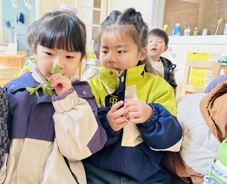 “可是这香菜怎么有一股奇怪的味道?”“这是香味呀,香菜是香的。”“是臭的!我不喜欢吃香菜!”“我喜欢!”……孩子们对“喜不喜欢吃香菜”开启了一次热烈的辩论。