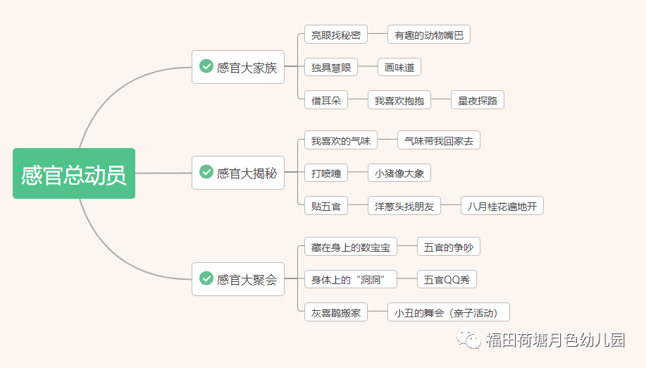 眼,耳,口,鼻,手是我们感知外界信息的感觉器官,当孩子们充分地运用自己的感官感知周围的事物时,他们的感官会帮助他们收集和传达不同信息,让他们获得认知经验,从而认识这个世界。本主题将“感官”作为探究内容,让我们和孩子一起深入认识感官及感知觉,一同开启孩子们的感官之旅。