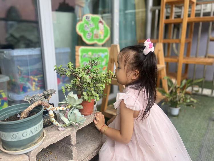 当孩子扬起小脸,眨巴着眼睛说:“老师,我今天脸上的香香味道不一样噢!”当孩子手里捧着小冰块,摇着头喊:“好冰啊!”看着孩子们有趣的样子,我们能够深深体会到他们运用自身感知觉探索、感知周围世界的快乐。
