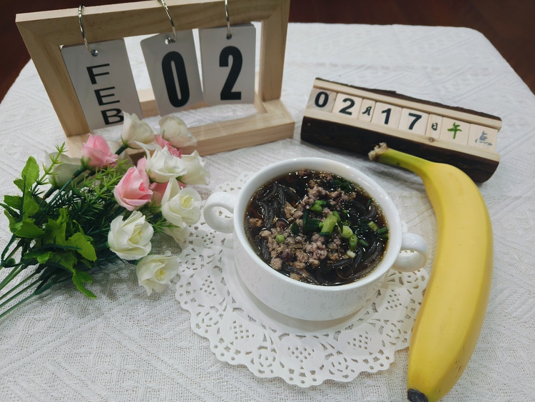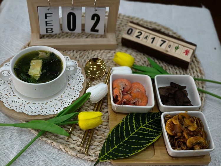 卤 鸡 翅 、三 鲜 汤 面 (肉末、蘑菇、冬笋、雪菜、胡萝卜、杂粮面)、健脾铁棍山药