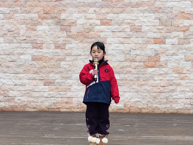 大四班郑昕妤小朋友给我们带来国旗下讲话《与法同行 快乐成长》。