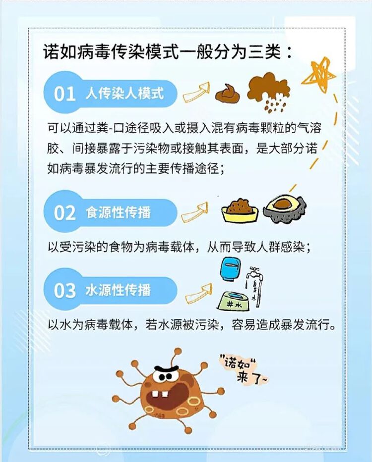 诺如病毒可以通过身体接触、水源、食物、呼吸等途径传播。