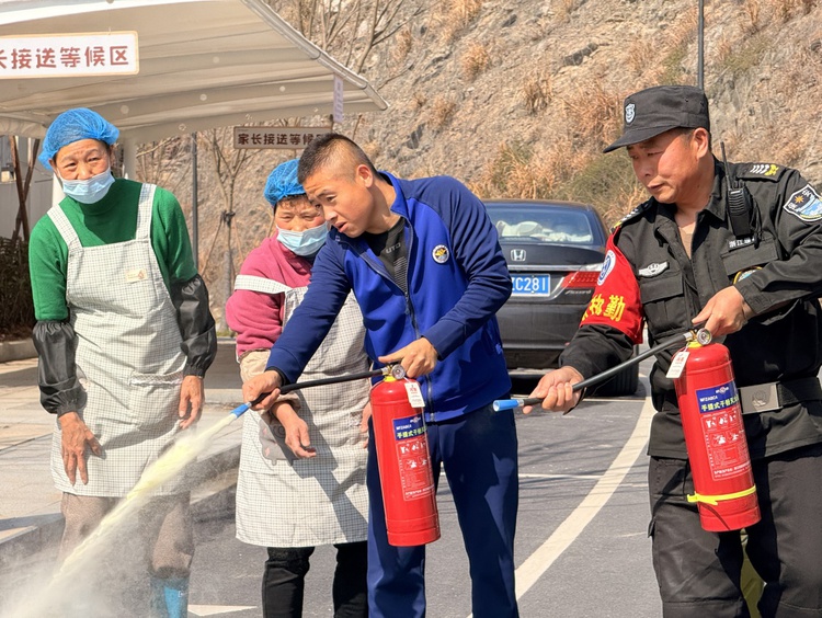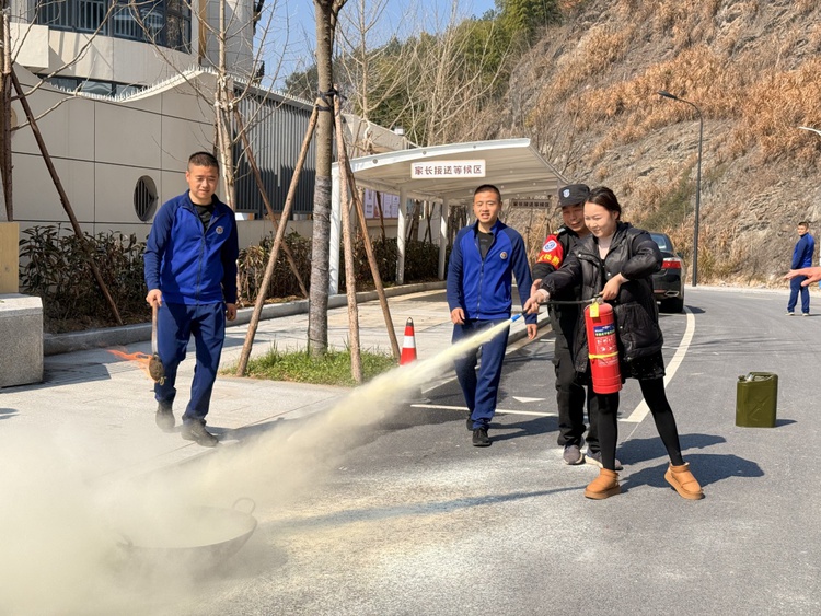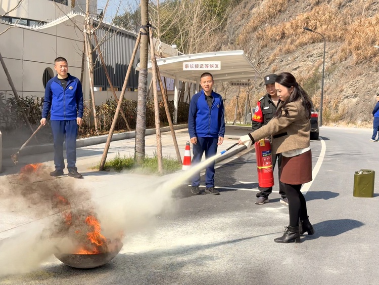 除应急演练外,新上岗的教职工们也开展了如何使用灭火器的实地培训。