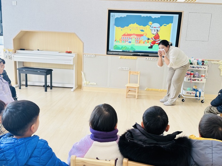 各班老师以PPT、视频等容易理解的方式对幼儿进行消防安全教育,帮助幼儿掌握基本的自我防护意识,提高幼儿逃生技能。