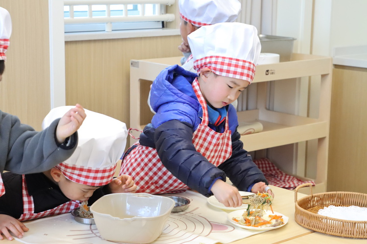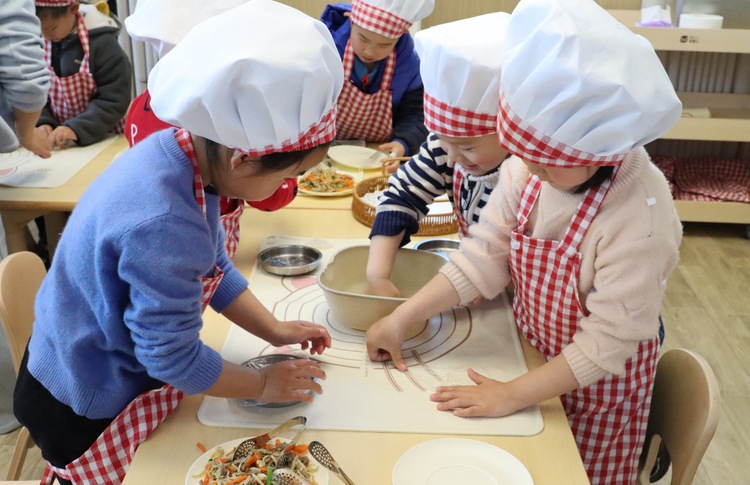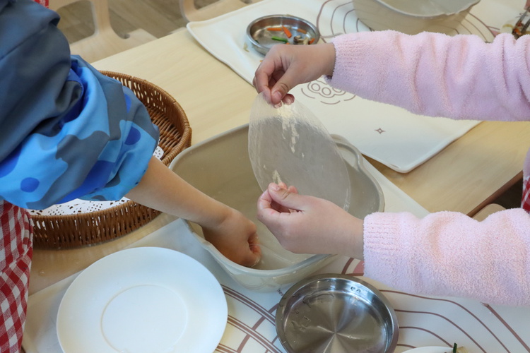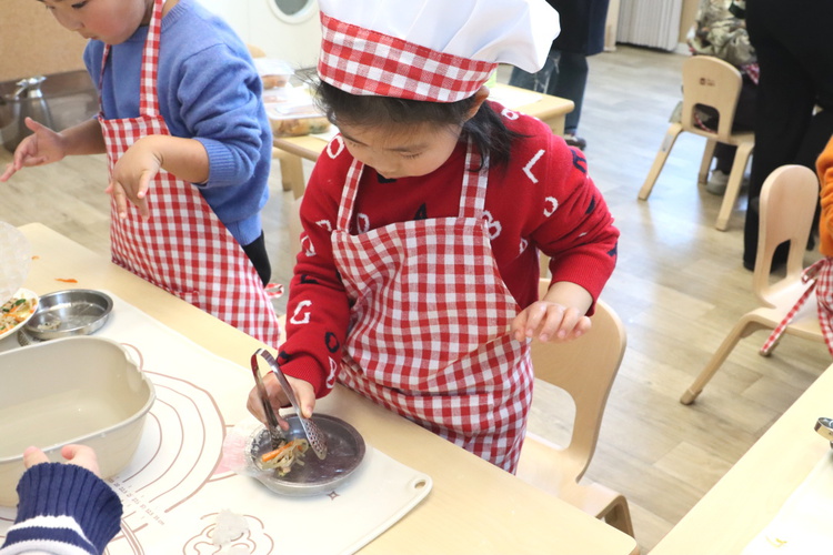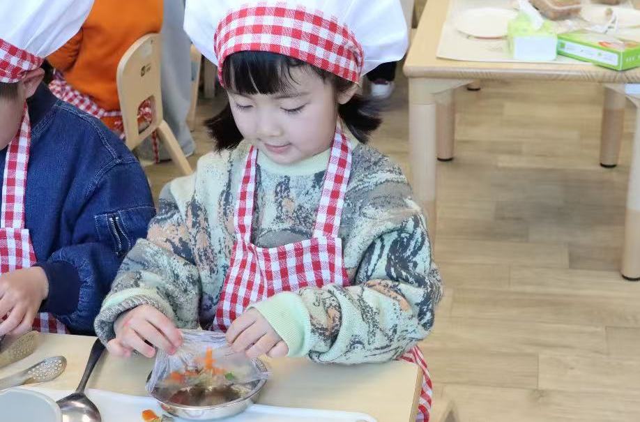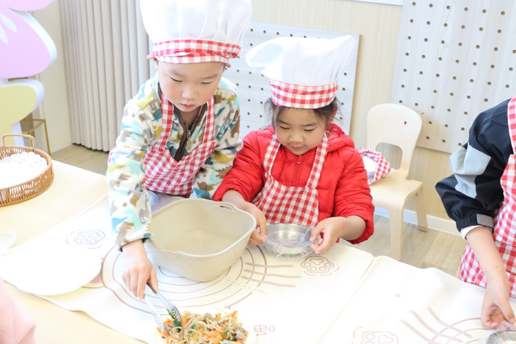 瑞瑞的妈妈来自福建,这次特意给小朋友们带来了一道极具家乡特色的美食——春卷。瑞瑞妈妈准备的馅料也大有讲究,满满的福建风味,里面有爽脆的豆芽、鲜嫩的韭菜、喷香的肉丝,还有质地柔韧的香干等 ,每一口都是家的味道。小朋友们亲手体验春卷制作的乐趣,在美食中感受浓浓的福建风情 。