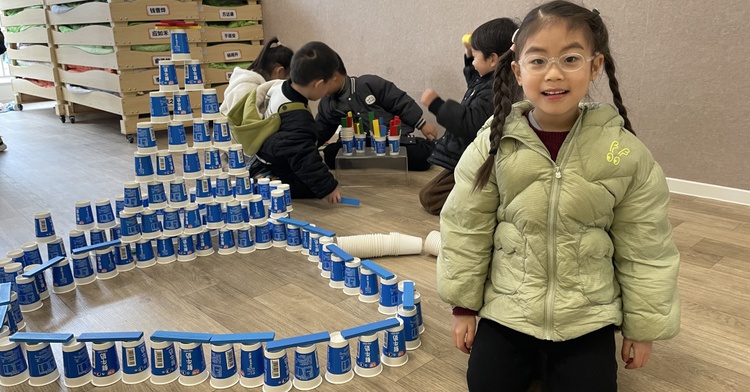 在探索家乡的主题活动中,孩子们专注观察家乡的地标性建筑,亲手搭建这些建筑模型。一砖一瓦、一梁一柱,都在他们的指尖逐渐成型,他们对家乡建筑的认知也随之不断深化,家乡独有的历史文化魅力,也顺着他们的小手,悄然融入心间。