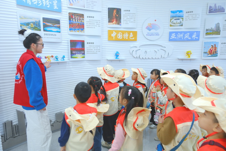 怀揣着兴奋与好奇抵达社区—亚韵社区,孩子们开启社区参观之旅,讲解员姐姐一路相伴,为大家讲述亚运文化的独特魅力,介绍琮琮、莲莲、宸宸这三个可爱的亚运会吉祥物,这次社区之行是一次前所未有的新奇体验,在他们小小的心灵中种下了温暖与知识的种子,也让他们对身边的社区有了更深入的了解。