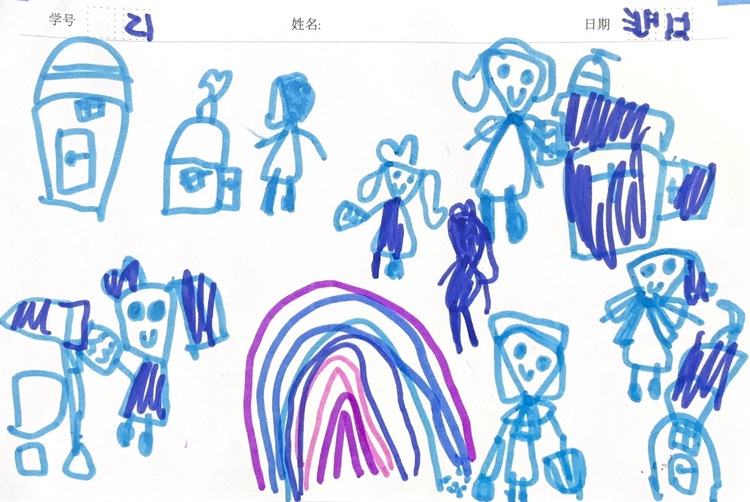 小朋友们想要用画笔把自己小区里的一切,像熟悉的楼栋、好玩的滑梯、热闹的小广场都画下来。