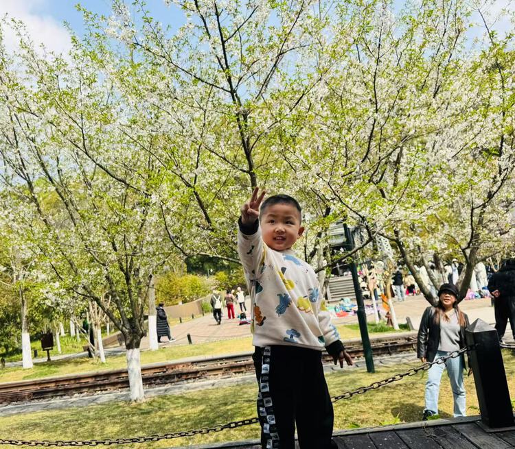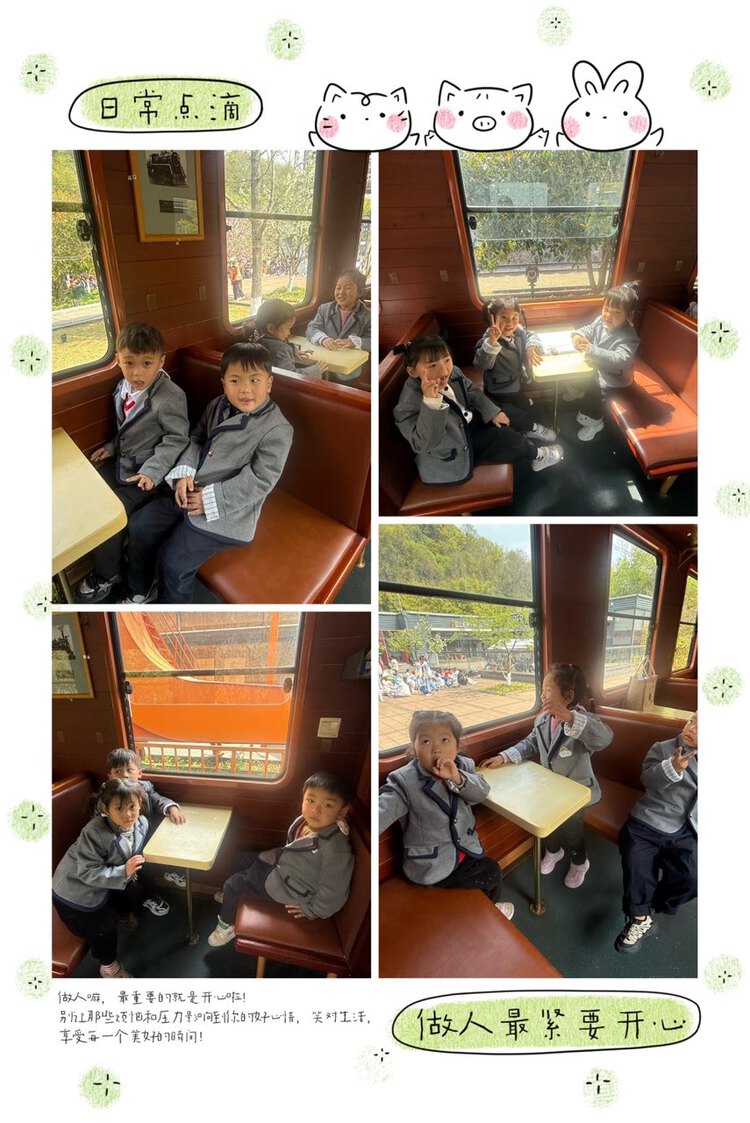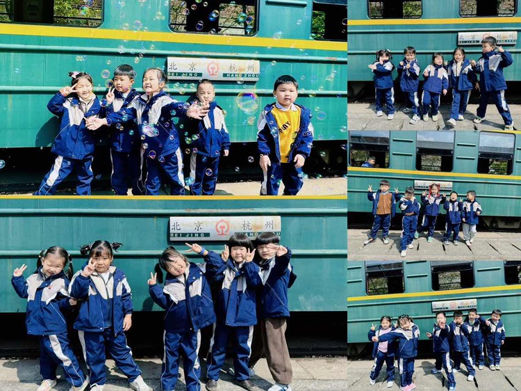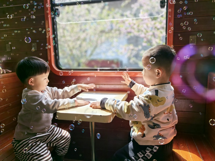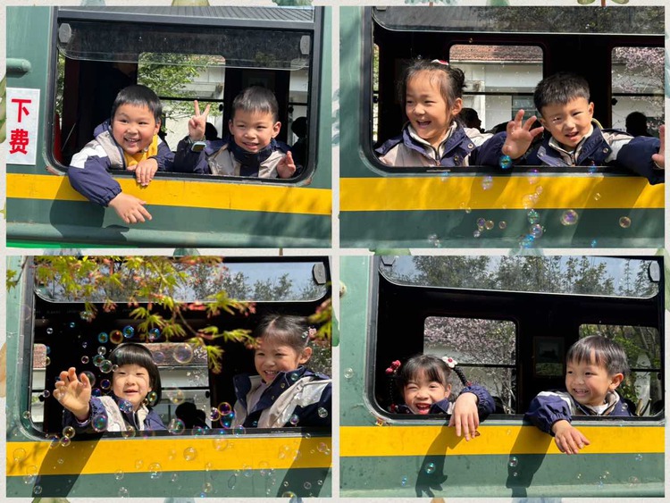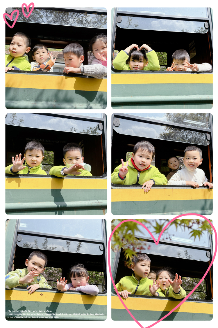 沿着铁轨漫步,孩子们找到了心心念念的绿皮小火车,随着呜呜的汽笛声响起,小火车出发了。入孩子们眼帘的皆是春天的颜色,缓缓前进的小火车仿佛行驶在春天的色彩里。