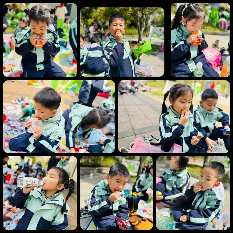 快乐春游的终极秘密武器当然是美食啦!能把自己心心念念的美食带来与小伙伴一起分享,是一件超级幸福的事情哦!随后,大家纷纷铺开野餐垫,拿出美食,享受起户外野餐的乐趣。孩子们一边品尝着美食,一边欣赏着周围的风景,脸上洋溢着幸福的笑容。