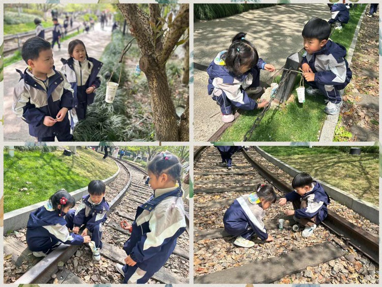 孩子们来到“白塔公园”,他们用眼睛去看、耳朵去听、小手去摸,发现花儿开了、小草绿了、叶子长出来新芽......小小的发现都让孩子们感受到新奇,在孩子们的心中种下探索的种子。
