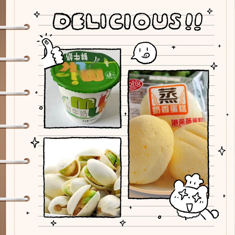 早点:鲜牛奶 蛋糕 开心果