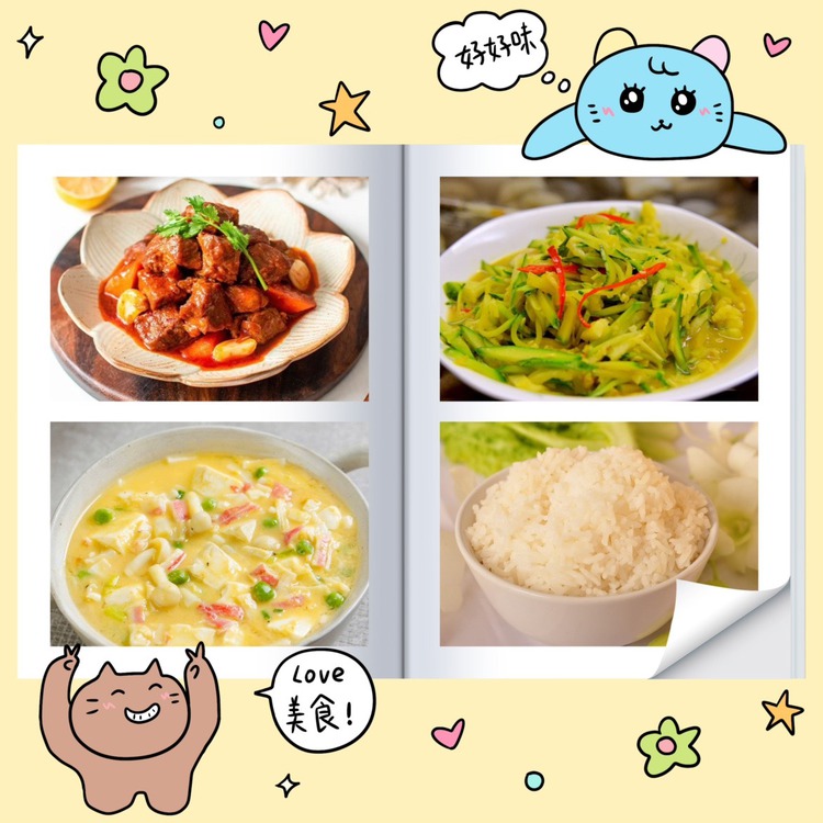 干锅花菜:花菜65g 肉片5g 洋葱5g 胡萝卜5g