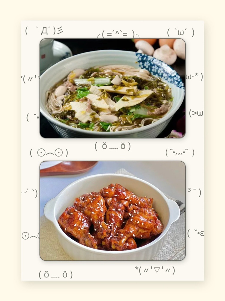 片儿川:湿面50g 肉丝15g 春笋20g 平菇10g 雪菜5g 鸡蛋15g
