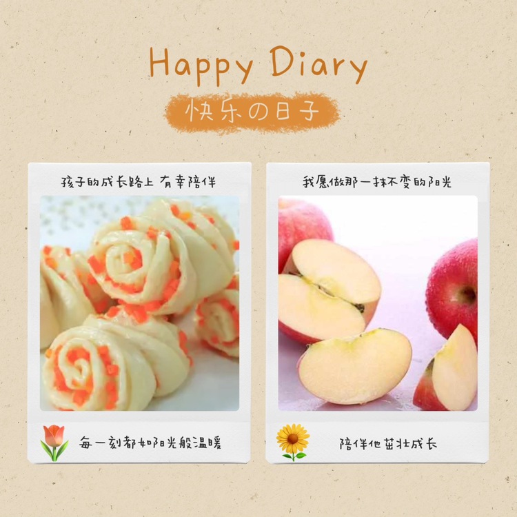 胡萝卜鸡蛋卷:胡萝卜5g 鸡蛋15g 牛奶10g 面粉40g