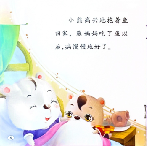 小熊高兴地抱着鱼回家,熊妈妈吃了鱼以后,病慢慢地好了。