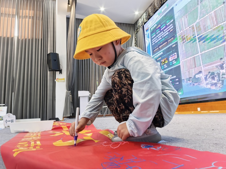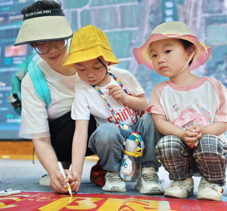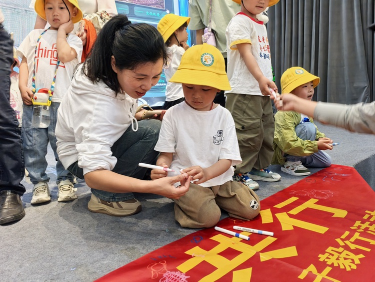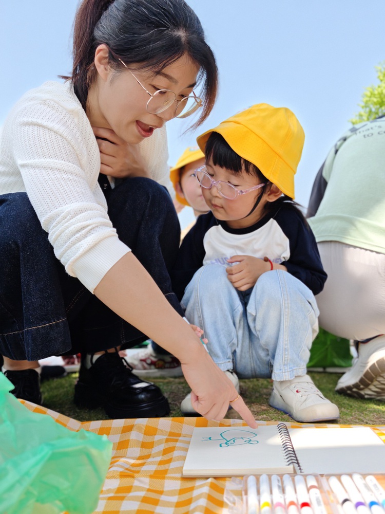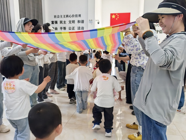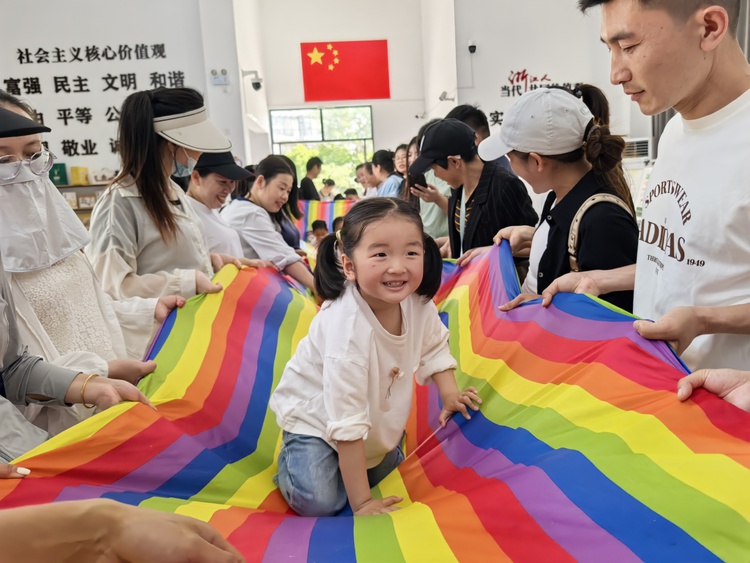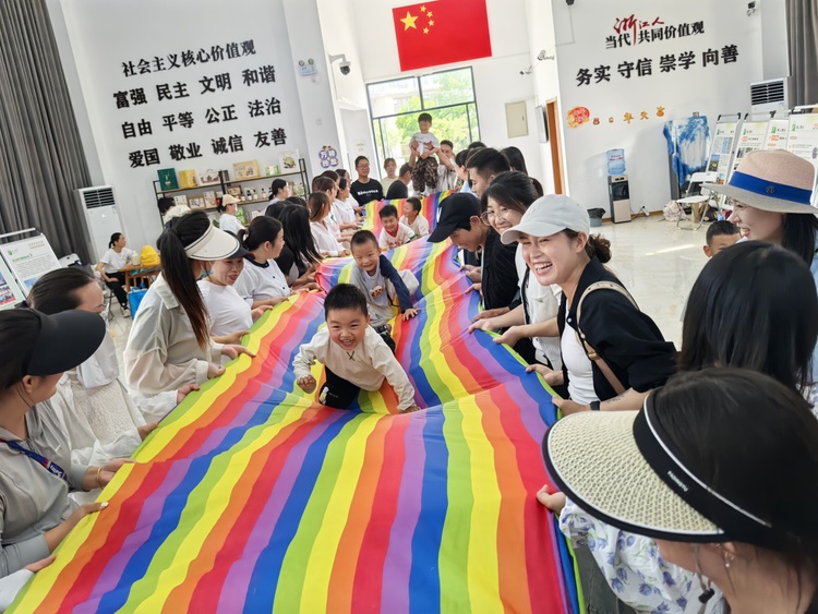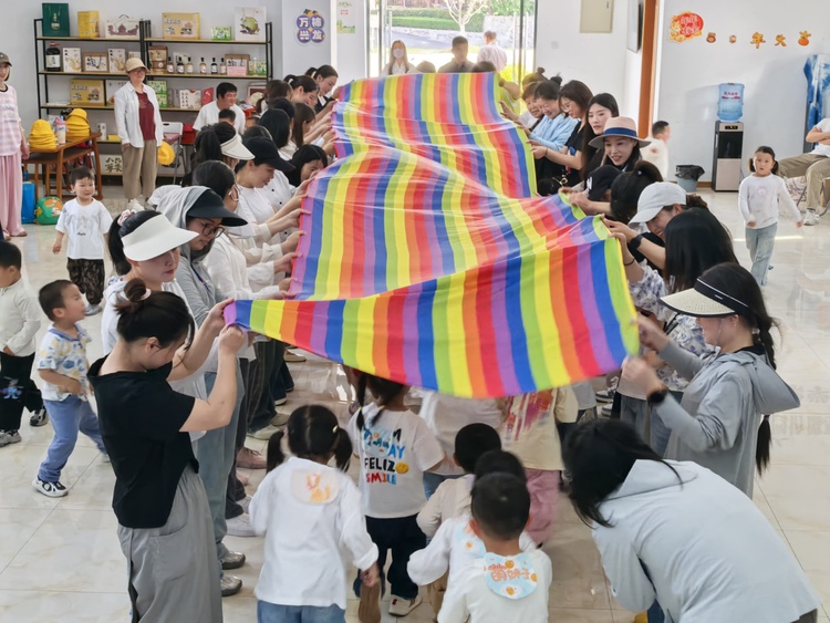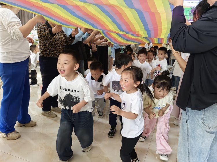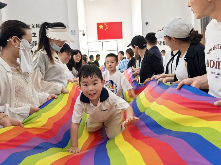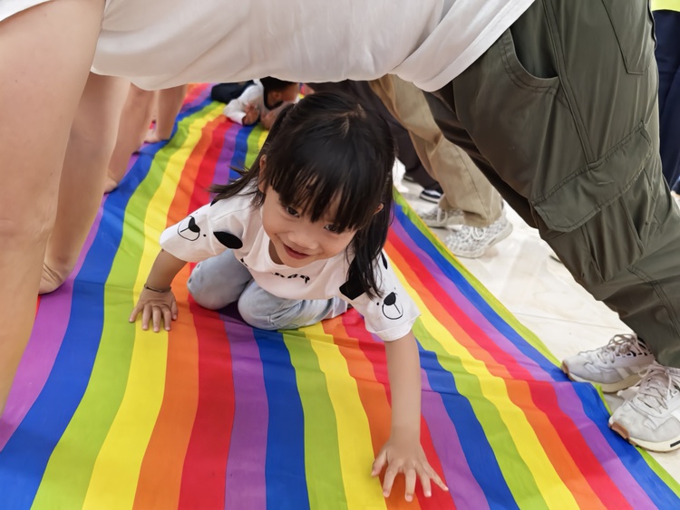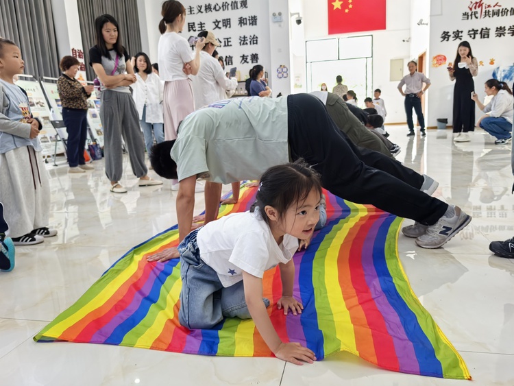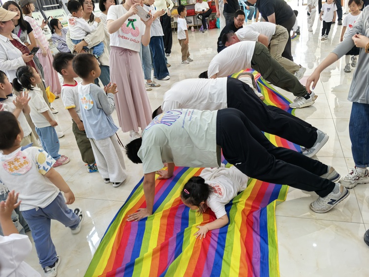 家长和孩子们一起合力完成小游戏,感受亲子游戏的乐趣。
