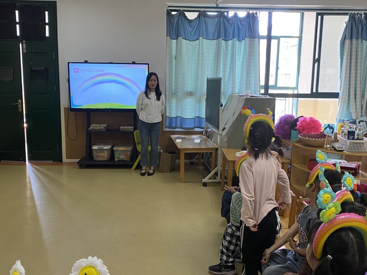 集体活动中,姚婉彤妈妈用图片欣赏的形式引入本次活动主题。以提问和解答的方式向幼儿讲述彩虹的形成。后续在实验过程中,每个小朋友都有专属的操作材料,让幼儿充分的参与其中,感受了实验的乐趣。