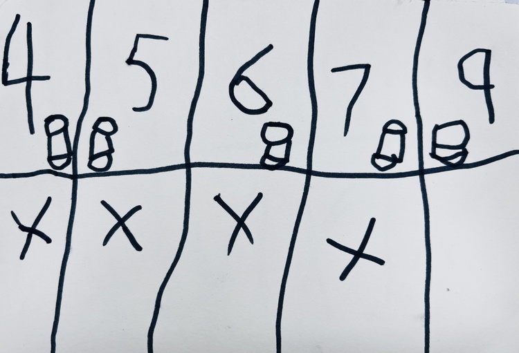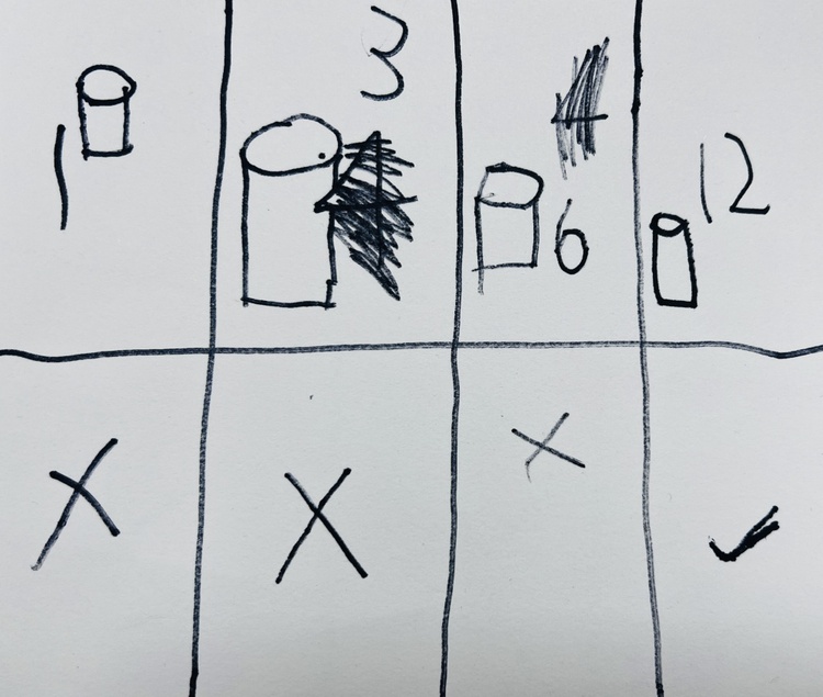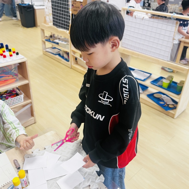 孩子们将用笔将一张纸进行划分,随后剪下来卷起来,将多个圆柱体进行拼接放置,然后准备开始站上去试试看!