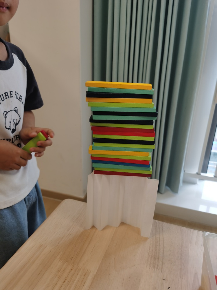 并且垫的板要像积木和绘本书一样硬才可以撑起来,像垫板、地垫这样比较软的、薄的则不是特别牢固。