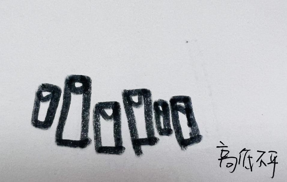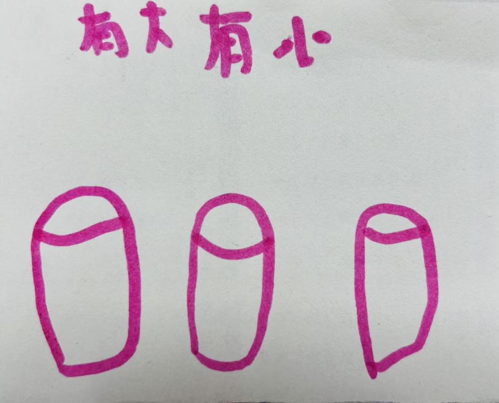孩子们开始分析这其中的原因,他们发现:这其中圆柱有大有小;有些圆柱是扁的,有些是圆的;这些圆柱高低不平。